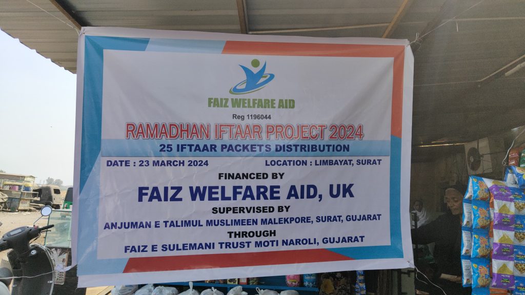 25 Iftaar packets were distributed in Limbayat, Surat, India on Saturday 23rd March 2024