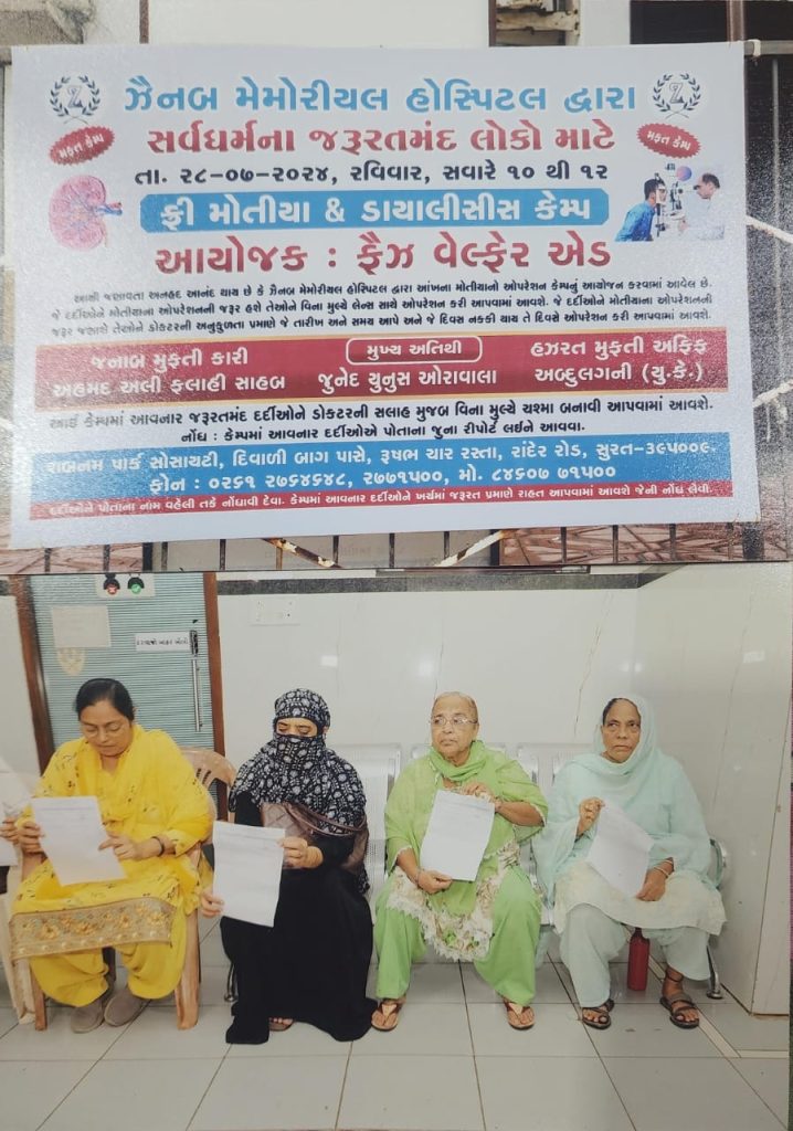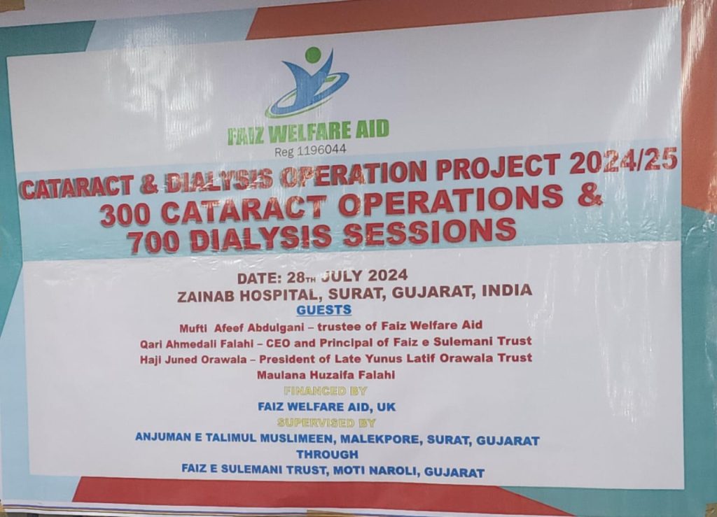 300 Cataract Operations and 700 Dialysis Sessions took place in Zainab Memorial Hospital, Surat, India on Sunday 28th July 2024.